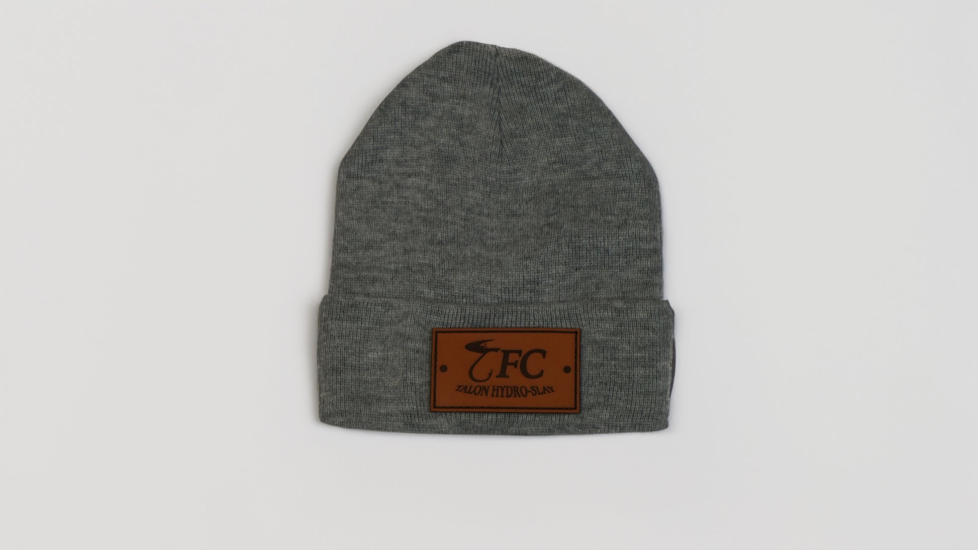Grey Richardson Beanie with an embossed leather patch TFC logo.