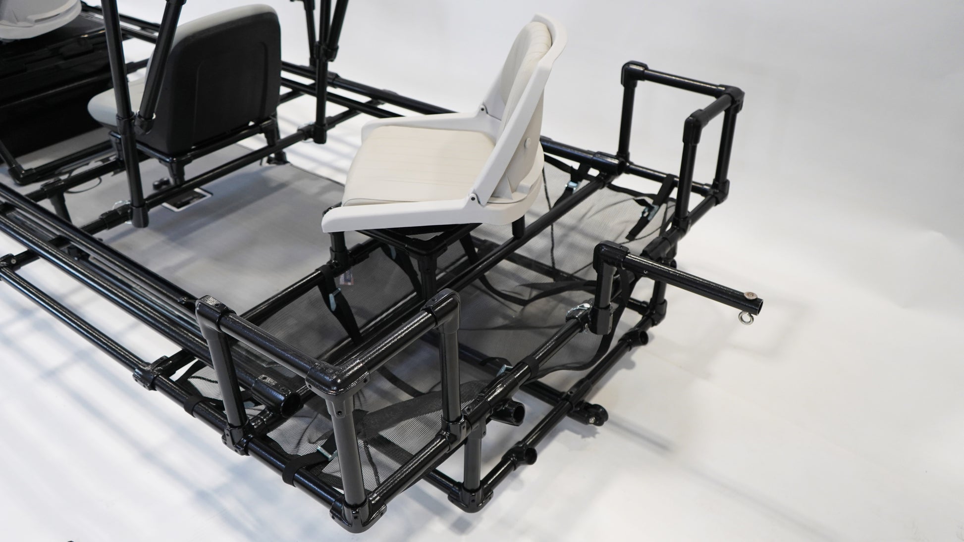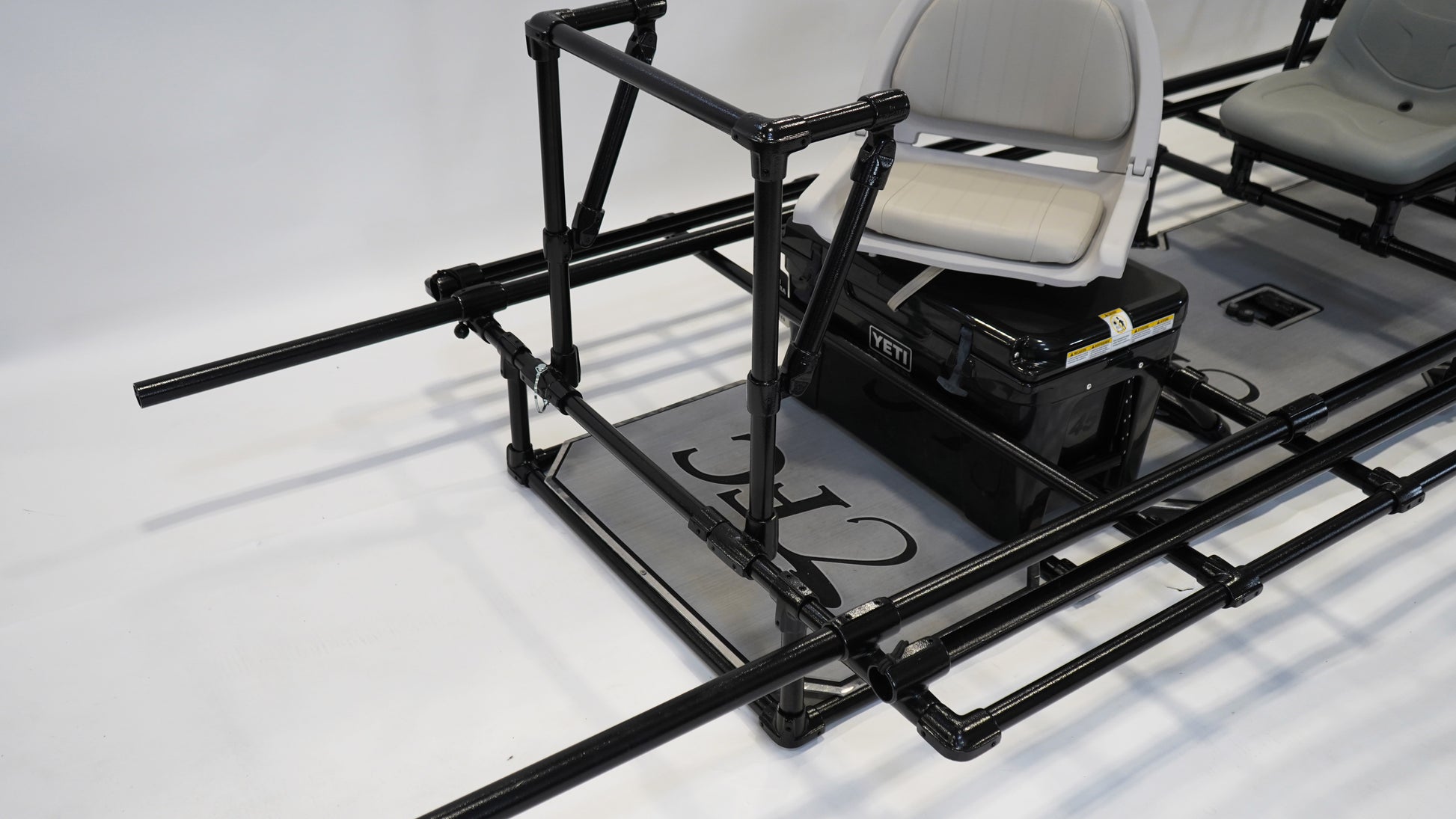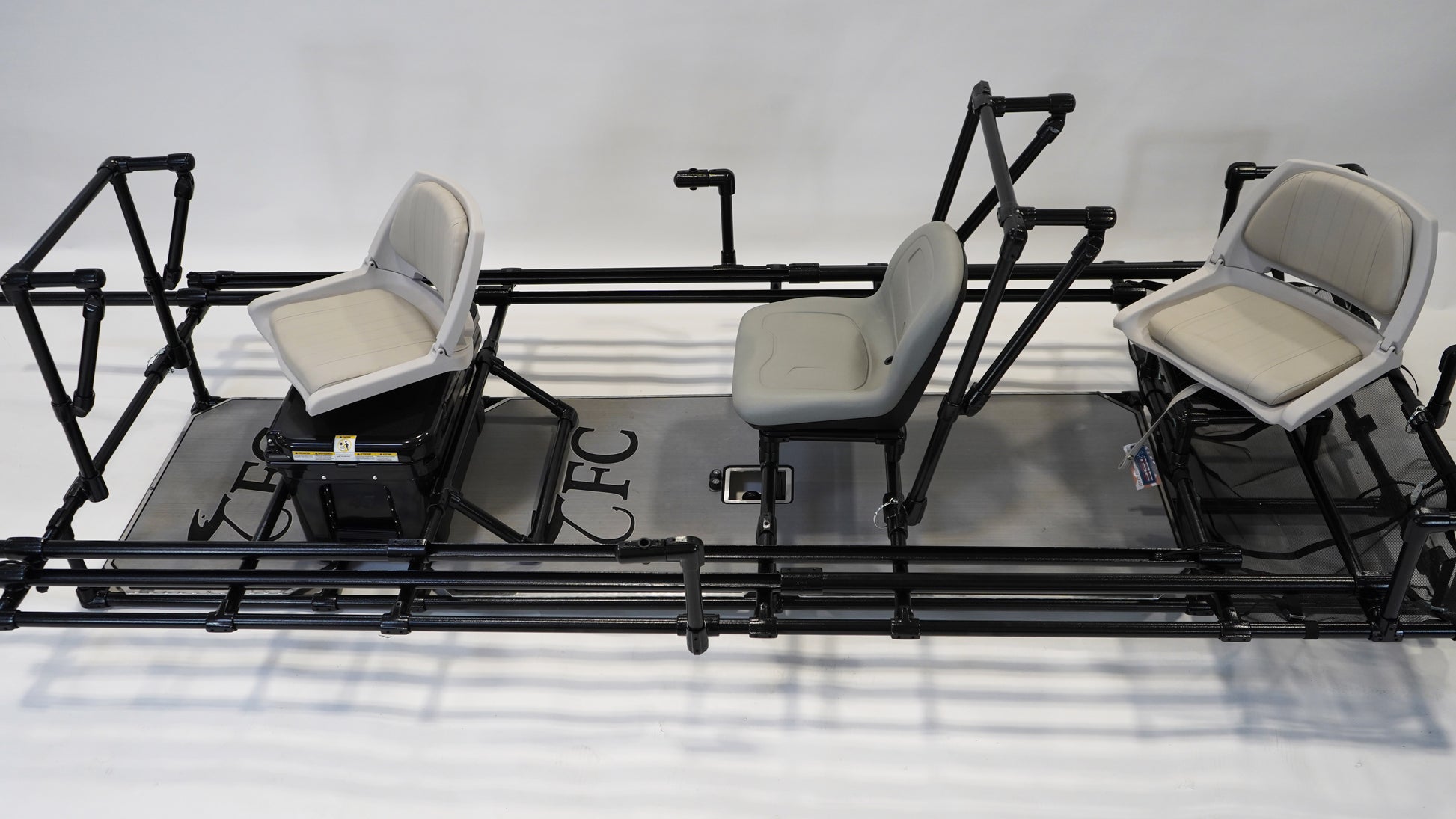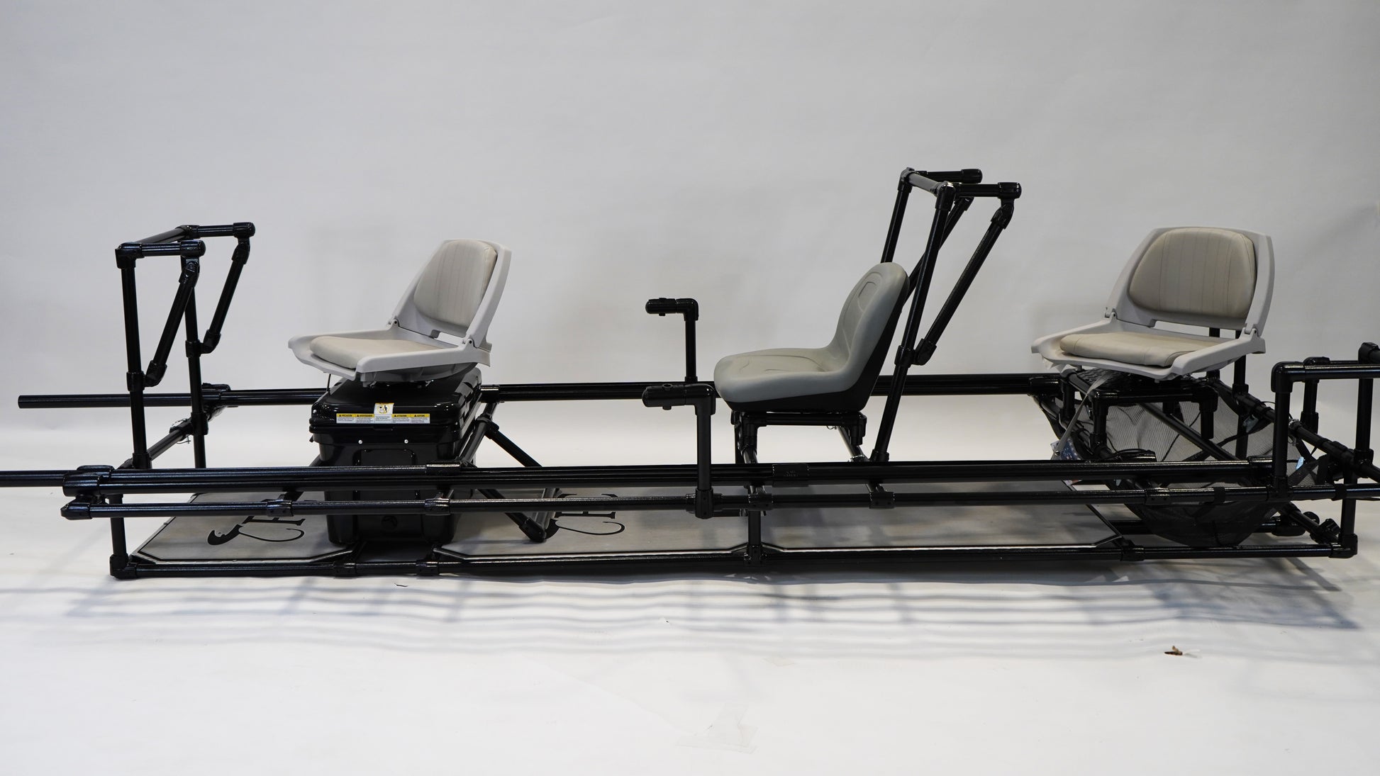 The Hydro Slay Guide Base Frame is the ultimate three-person cataraft frame, designed for bigger motors, heavier whitewater, and extreme durability. Built with Diamond Plate standing platforms for rock-solid stability and Seadek padding for all-season comfort, this frame ensures peak performance in both rough rapids and open waters. It features a 4 rod holder system, with two facing the front and two facing the rear angler for easy rod access. While heavier than its smaller one and two man counterparts, the Hydro Slay Guide delivers unmatched strength, control, and capacity—perfect for guides, anglers, and rowers looking for new water to explore and priceless memories to create.