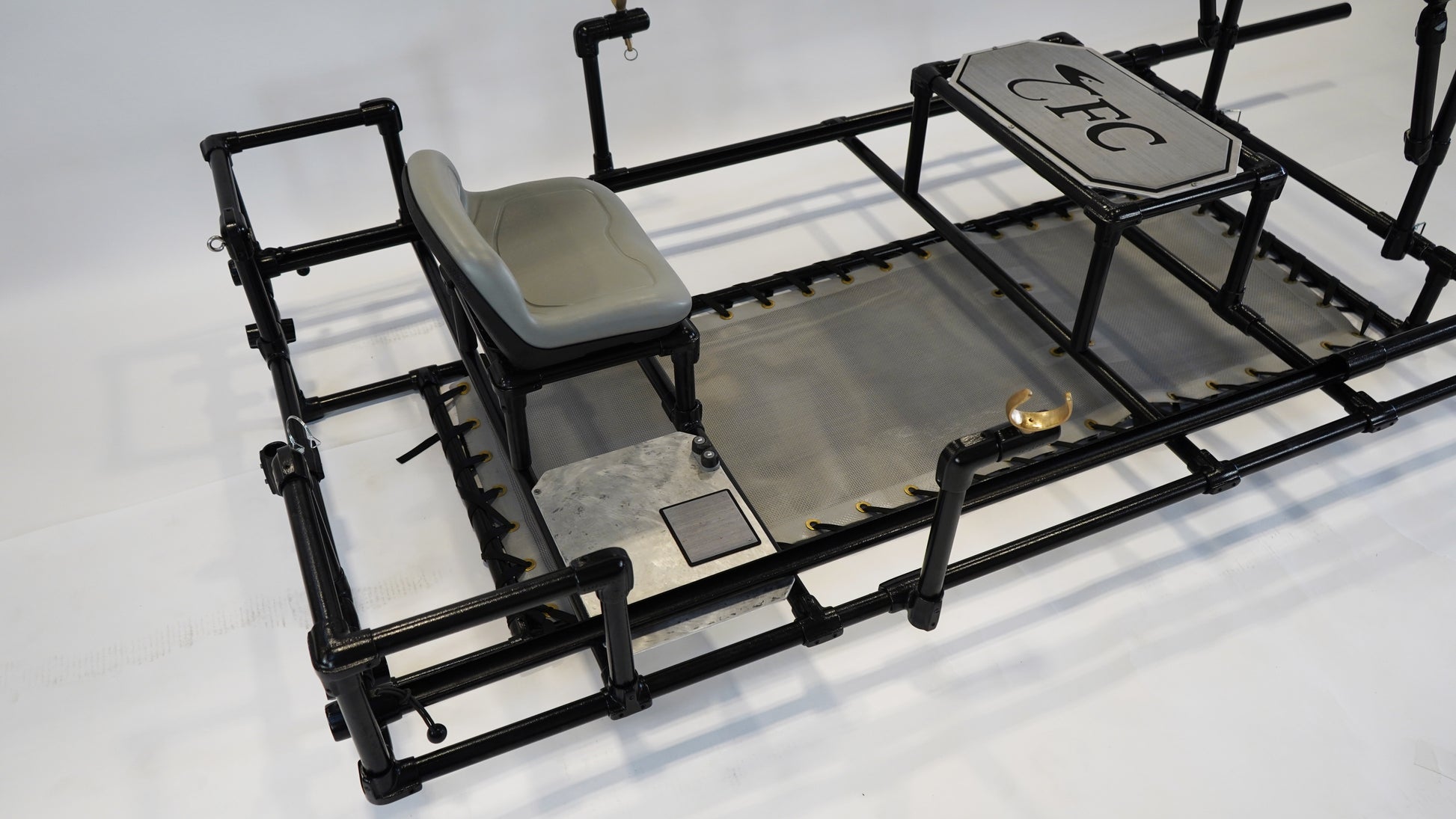 Our Hydro-Slay Recon Base frame is the perfect frame for exploring new water and accessing hard-to-reach areas. This lightweight frame features our heavy-duty, stable Sotar Mesh Floors that keeps this cataraft frame light and portable so you can launch in areas and access water that other boats can't. The Rower's Flip Seat and Front Flip Seat/Standing Platform is a sleek and cutting-edge design on this frame; they can easily be removed, allow for more storage, and offer anglers a stable platform to sight fish from. The TFC Custom Dual Rod Holder System comes standard on all of our two/three man frames and also provides anglers with a convenient way to grab and carry this craft.