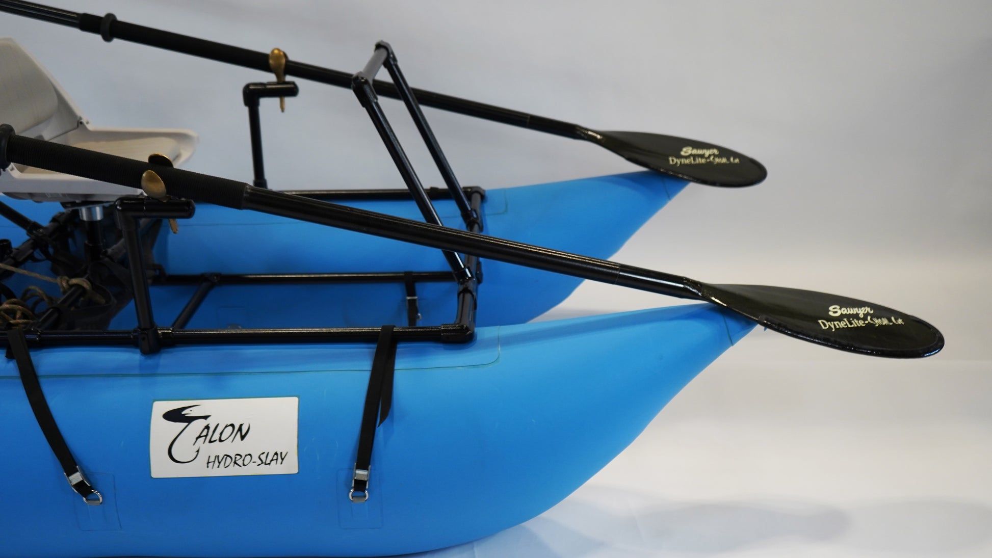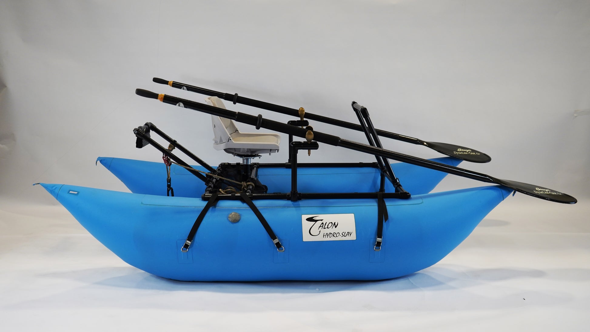 Built on our Hydro-Slay Solo Base Frame, this rugged one-man cataraft is perfect for anglers and rowers who need a lightweight, maneuverable, and durable craft. Compact enough to toss in your truck bed yet tough enough for serious water conditions, the Hydro-Slay Solo Fully Kitted Package ensures you're always ready to row, anchor, and be successful on the water.