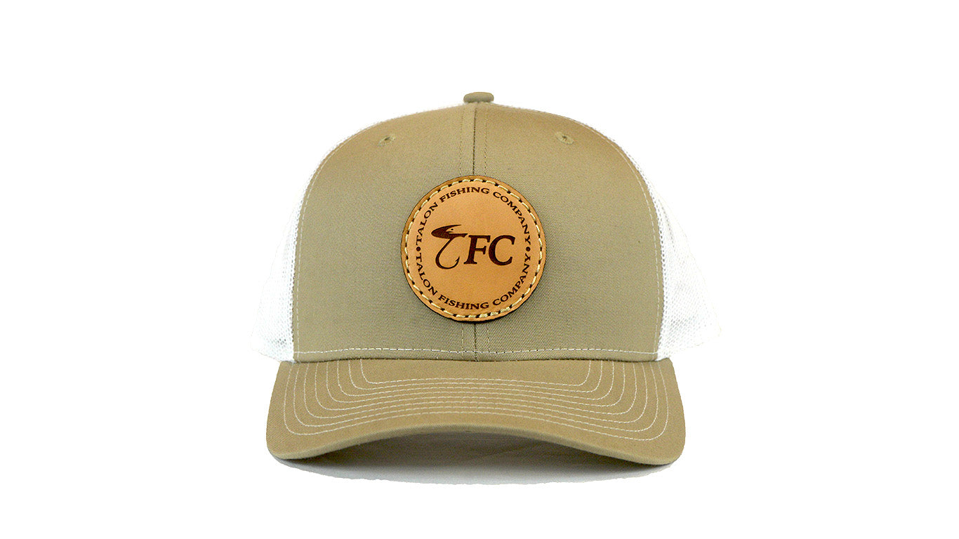 Adjustable Richardson 112 Trucker hat style with an embossed leather patch TFC logo.